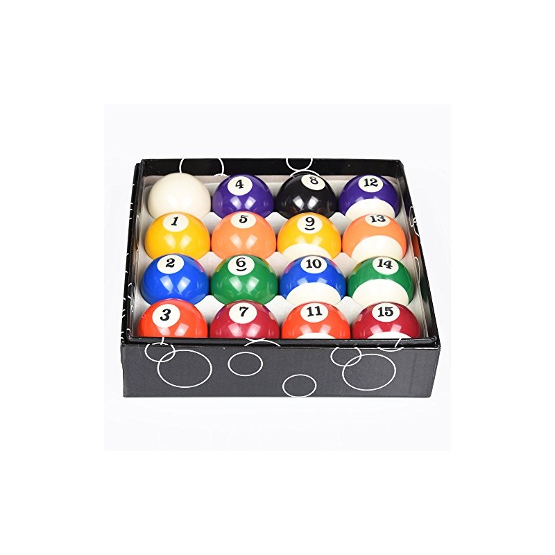 - 2-1/4 Inch Regulation American Pool Ball Set, Includes 15 Numbered Balls and 1 White Ball