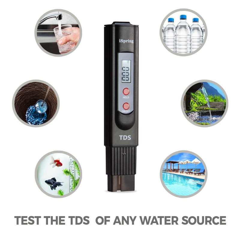 iSpring TDS2 Digital 2-Button TDS Meter with Backlit LCD, Black