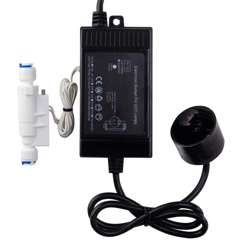 - EFFECTIVE - The UV ballast includes Transformer and Flow Sensor Switch. It works with 11W UV lamps. It’s a suitable solution to filter well water and other problem water sources like water from lakes and streams by working with an UV light. Please note: It does NOT include the UV light and housing. The water flow direction sign on the flow sensor quick fitting connection.