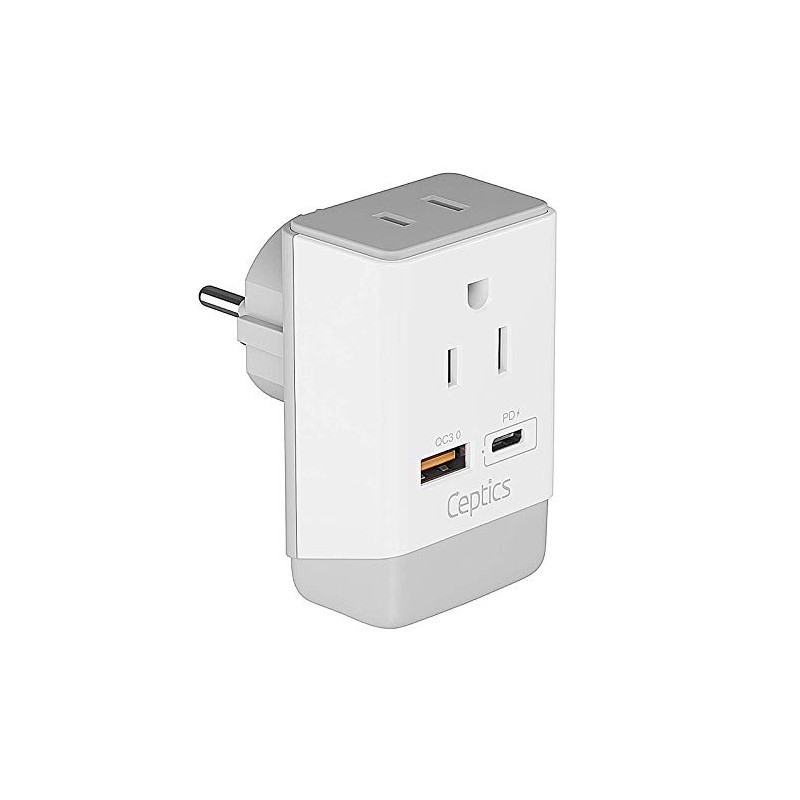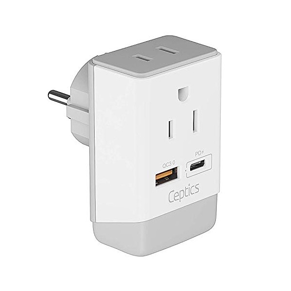 Israel Power Adapter, QC 3.0 & PD by Ceptics, Safe Dual USB & USB-C - 2 USA Socket Compact & Powerful - Use in Jerusalem, Holy Land, Palestine, Gaza Strip - Type I AP-14- Fast Charging