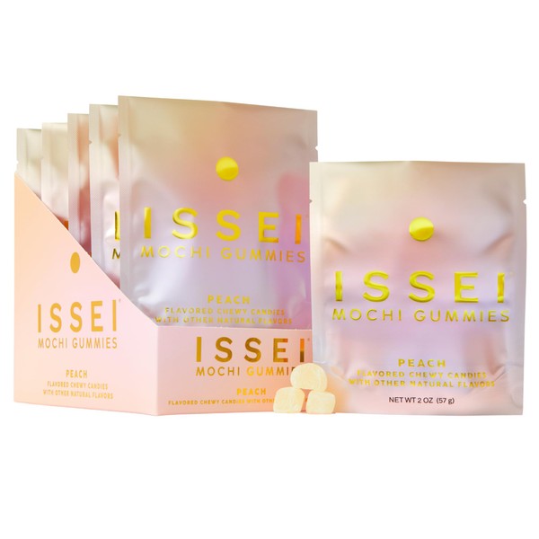 ISSEI Mochi Gummies | Dye-Free Candy with Colors from Natural Sources | Gelatin-Free | Plant-Based | Non-GMO | Real Sugar | Award-Winning Japanese Candy (2oz (Pack of 6), Peach)