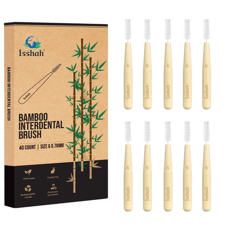 Isshah Bamboo Interdental Brushes, Between Teeth Cleaner Deep Clean Brush, 40 Count, Size 6, Large Gaps