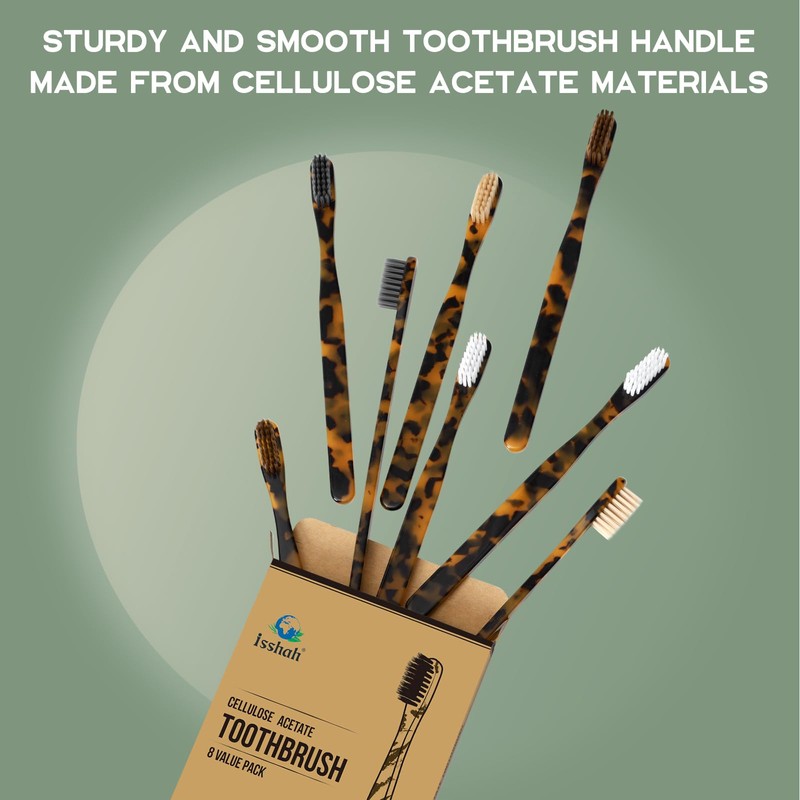 Isshah Biodegradable Eco-Friendly Cellulose Acetate Toothbrushes - 8 Count