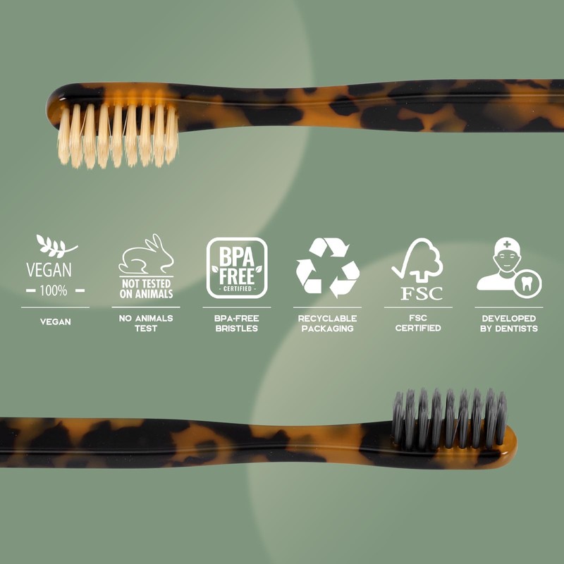 - Sustainable Material - Our toothbrushes are made from cellulose acetate, a plant-based material derived from renewable resources, making them a sustainable choice for oral care.