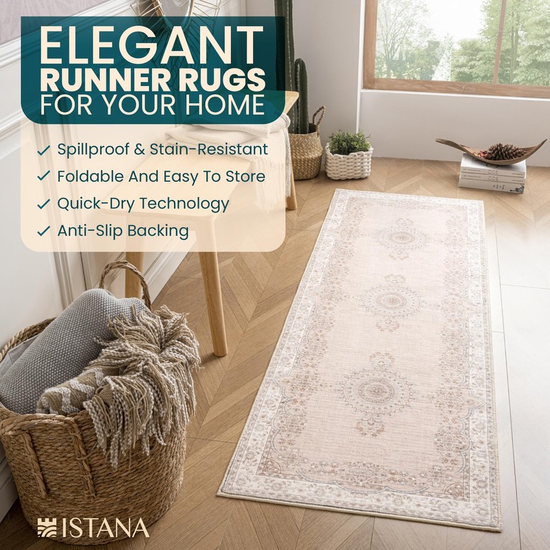 Istana Hallway Runner Rug 2.5x8 – Beige Entryway Rug -Silk's Soft Touch Runners for Hallways - Stylish Kitchen Runner Rug Non Slip