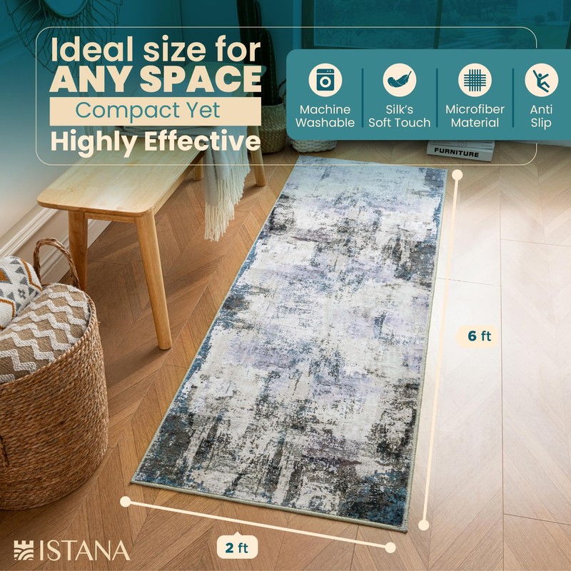 Istana Hallway Runner Rug 2x6 - Grey Navy Kitchen Rugs Non Slip Washable -Silk's Soft Touch Carpet Runner - Stylish Rug Runner for Home