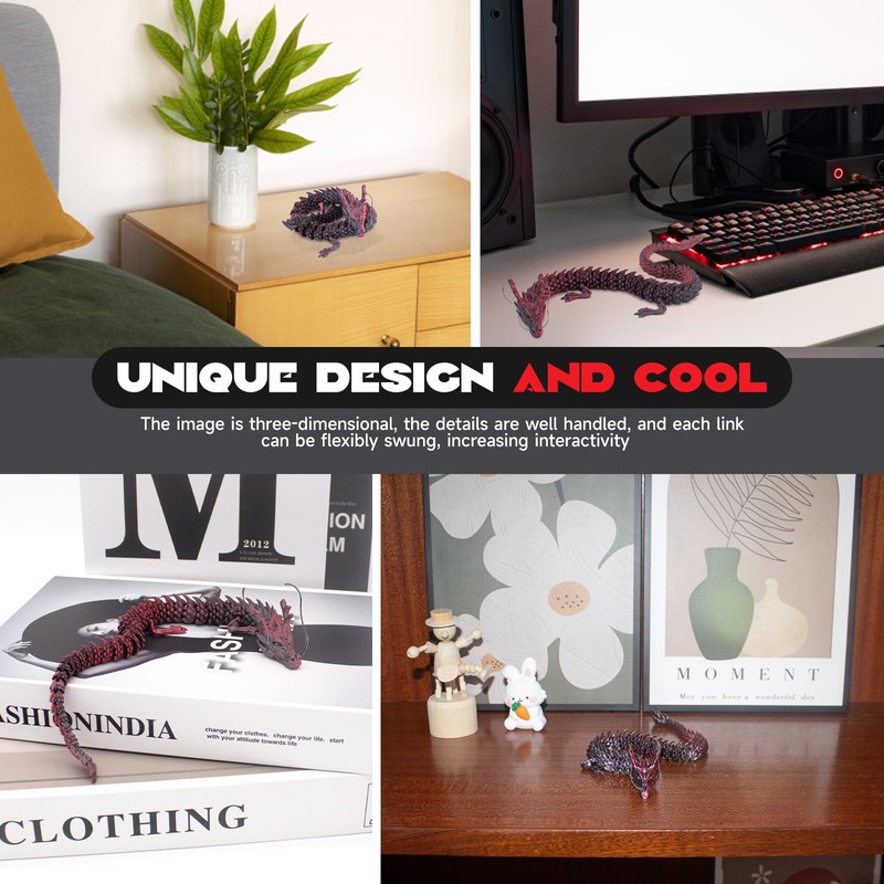 - Articulated Design: The 3d dragon has a special articulated design with full body mobility allowing for flexible posing and positioning.