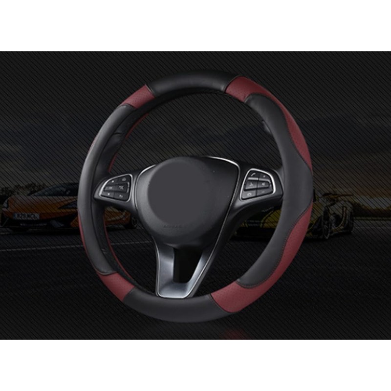Istn 38.1 cm Car Steering Wheel Cover, Unisex, Sports Style, Contrasting Colours, Non-Slip with Sweat, Good Breathable, PU Faux Leather