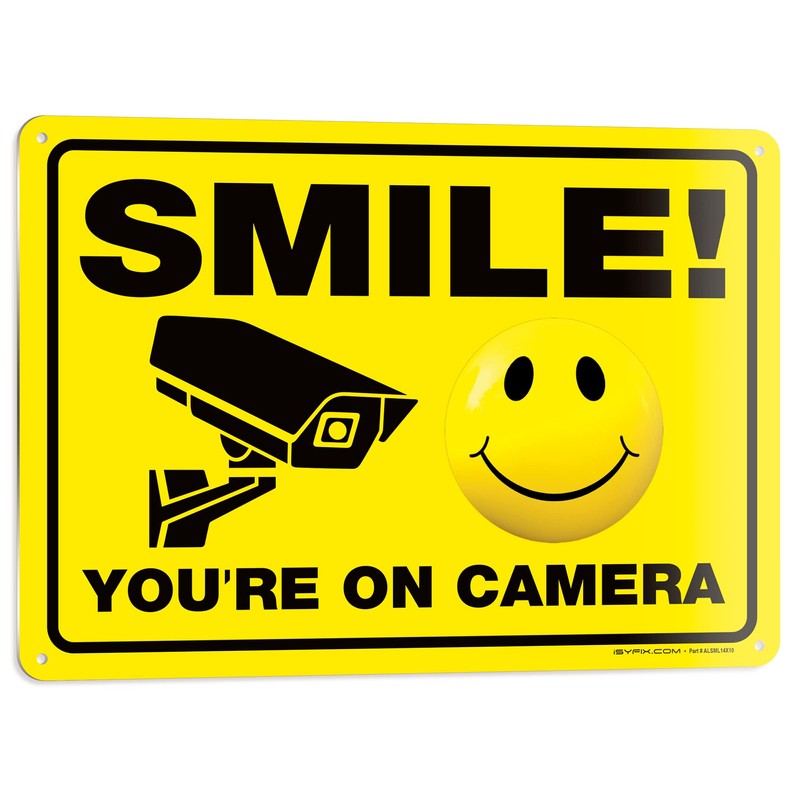 - CAMERA SIGN TO PREVENT CRIMINAL ACTIVITY – Smile your on camera signs are a great way to deter potential criminals from trespassing or committing any illegal activities on your property. These signs are easy to install and can be placed in a variety of locations around your home or office. They are a great way to increase security and keep your family and belongings safe.