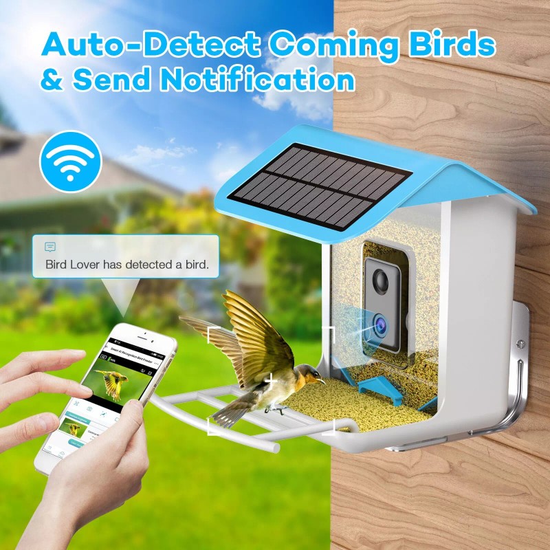 - Free AI Forever: This bird feeder with camera can automatically capture and identity the coming birds and provide you real-time notifications via the phone app, allowing you to observe birds from anywhere and at any time without monthly pay for the AI function.