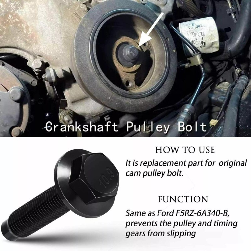 Compatible with Ford 2004-2010 F-150 All 5.4L engines and 2008-2010 4.6L engines; compatible with Ford 2005-2010 F-250 All 5.4L engines; compatible with Ford 2004-2014 Expedition All vehicles; 2004-2014 Lincoln Navigator All vehicles; compatible with Ford Mustang GT 2005-2009 and Bullitt; compatible with Ford 2005-2010 Explorer All V8 models; 2005-2010 Mercury Mountaineer All V8 models; compatible with Ford 2006-2010 Explorer Sport Trac All V8 models; 2006-2008 Lincoln Mark LT All vehicles | Replace OEM number: 3R2Z6A257DA, 3R2Z-6A257-DA. This camshaft timing mounting bolt is a direct replacement part fit for Ford, Lincoln, Mercury vehicles. | 2005-2012 5.4L 3V Expedition, Navigator; 2006-2010 4.6L 3V Explorer, Mountaineer; 2009-2010 4.6L 3V F-150; 2004-2010 5.4L 3V F-150; 2006-2014 6.8L F-53 Motorhome Chassis; 2011-2012 6.8L 3V F-59 Commercial Stripped Chassis; 2005-2009 5.4L 3V F-Super Duty 250-550; 2005-2009 6.8L 3V F-Super Duty 250-550; 2006-2008 5.4L 3V Mark LT; 2005-2010 4.6L 3V Mustang; 2005-2014 4.6L/5.4L 3V Lincoln Mercury |