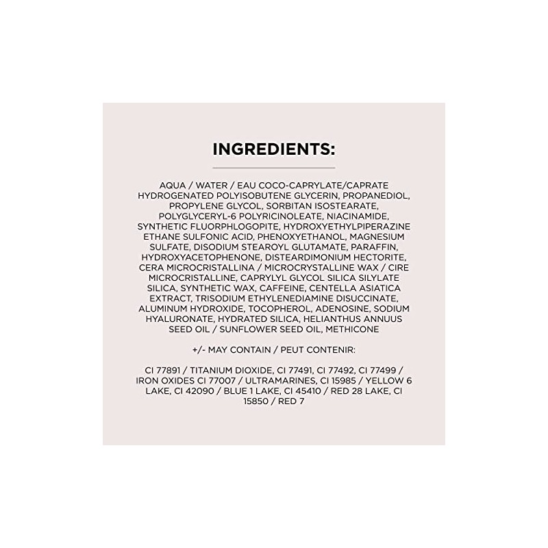 - SKIN-LOVING INGREDIENTS ?ormulated with a powerhouse trio of 2% niacinamide, hyaluronic acid and caffeine, our Super Bright Serum formula visibly improves the look of bare skin over time. Niacinamide helps skin look more even-toned and minimizes the look of dark spots. Hyaluronic acid provides 24 hours of hydration and helps support skin elasticity and plumpness. Caffeine can help skin look brighter.