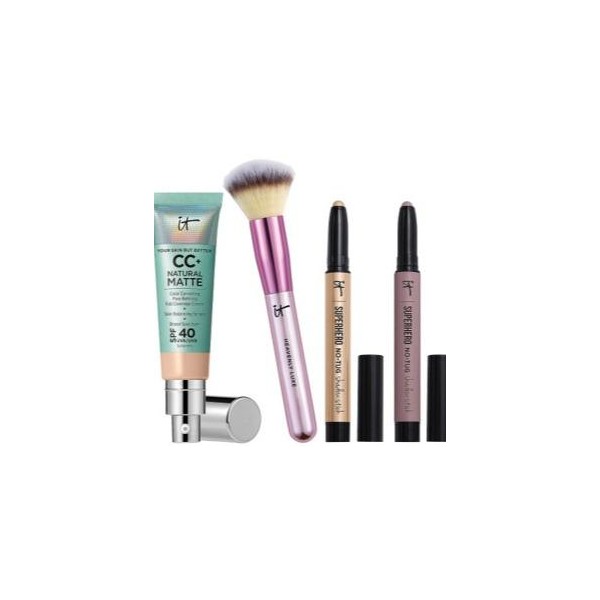 Complexion perfection + luminous lids -- this four-piece foundation and shadow stick collection from IT Cosmetics features the tools you need to put your best face forward!