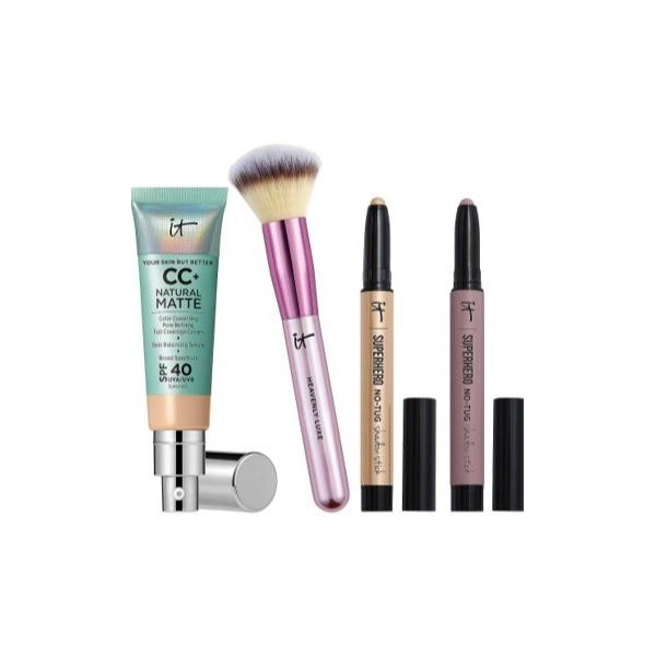 Complexion perfection + luminous lids -- this four-piece foundation and shadow stick collection from IT Cosmetics features the tools you need to put your best face forward!