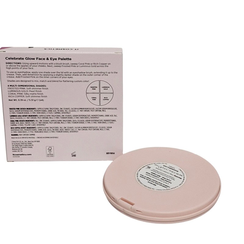 Keywords: IT Cosmetics, Celebrate Glow, Face Palette, Eye Palette, Makeup Palette, Blush, Bronzer, Highlighter, Shimmer, Matte, Pink, Gold, Cosmetics, Beauty