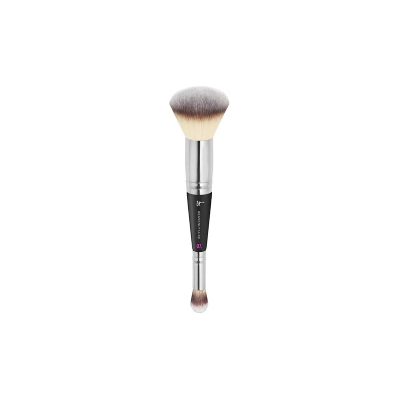 Brocha Heavenly Luxe Complexion Perfection de IT Cosmetics #7, brocha para base y corrector en uno, cerdas suaves, prohigiénica e ideal para pieles sensibles.