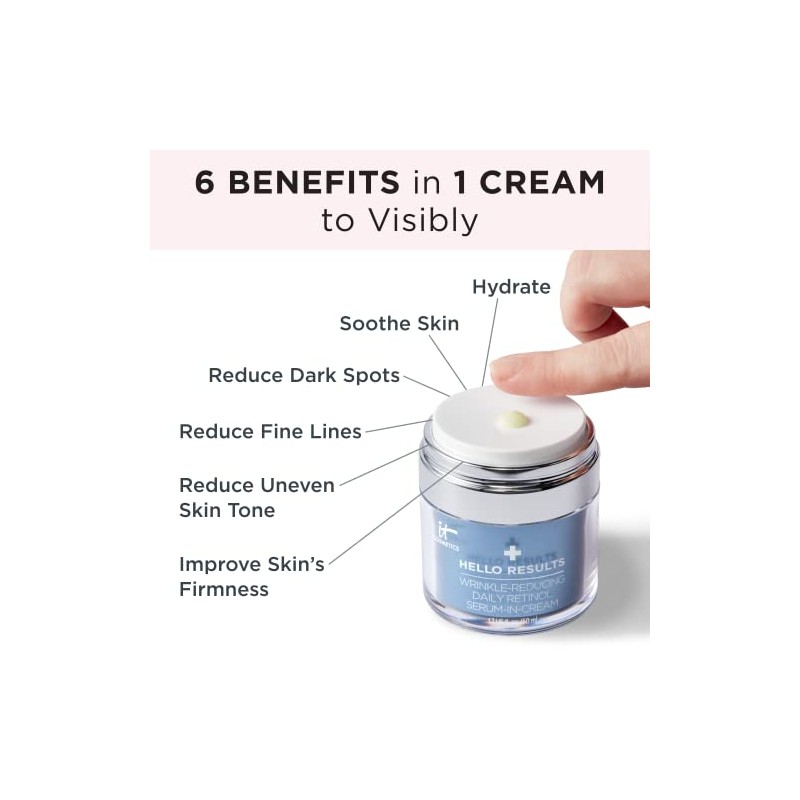 ๐ ๐ It Cosmetics Hello Results Serum, Serum Crema Facial Reafirmante y Anti-Signos de la Edad con Retinol, Niacinamida, Vitamina B5 y Vitamina E, 50 ml ๐ ๐