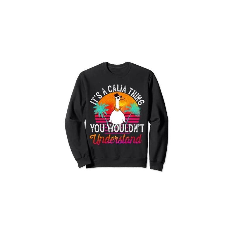 - Special Retro 80s Sunset Vintage Funny Calia Name Goose Wearing Glass and a Hat Design to Wear on Calia Birthday, Holiday, Family Vacation, Honeymoon, School, Christmas Day, Halloween, Valentine's Day, Birthday Party Decoration, Fun Work Name Tag