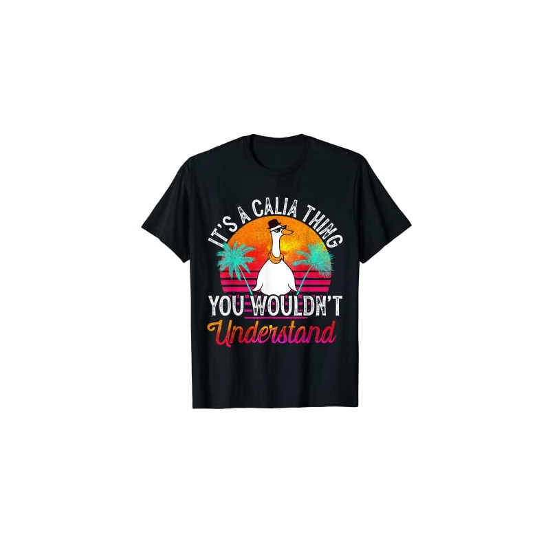 - Special Retro 80s Sunset Vintage Funny Calia Name Goose Wearing Glass and a Hat Design to Wear on Calia Birthday, Holiday, Family Vacation, Honeymoon, School, Christmas Day, Halloween, Valentine's Day, Birthday Party Decoration, Fun Work Name Tag