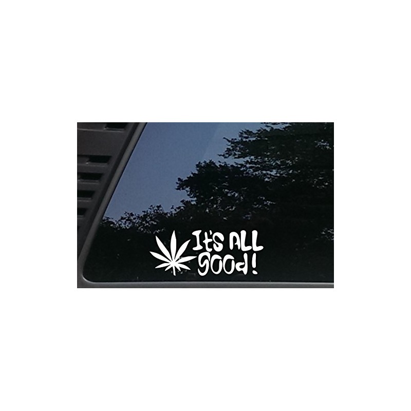 It's All Good with Pot Leaf - 7 1/2" x 3" die Cut Vinyl Decal/Bumper Sticker for Windows, Cars, JDM, Trucks, Bumpers, Tool Boxes, Boats, laptops - virtually Any Hard, Smooth Surface. Made in The USA