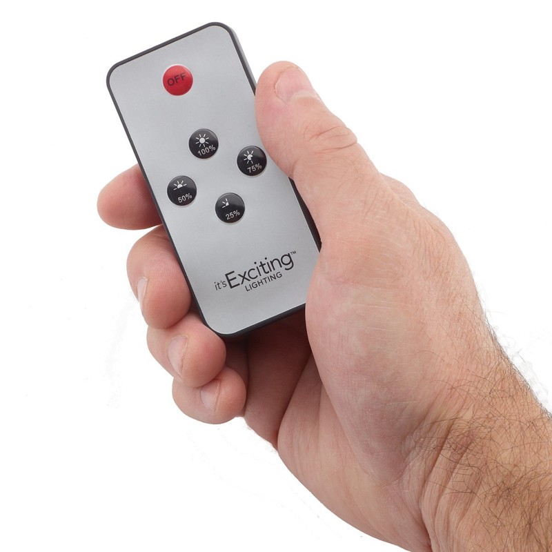 - Includes remote control which can be used for all stages of brightness.4 hour timer with auto shut off to preserve battery life.Includes adjustable cord so it can hang from 8" to 44".Hang anywhere with two toggle bolts (included).Do-It-Yourself Install - no electrician required!