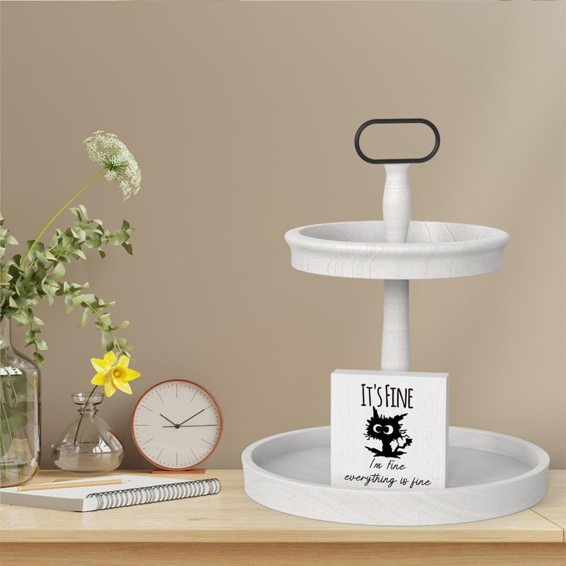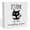 It's Fine I'M Fine Everything is Fine Sign, Black Cat Desk Decor, Funny Cat Office Desk Decorations for Home Tabletop Shelf, Cat Lover Gift for Women Men 5 X 5 in