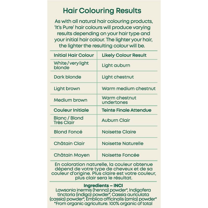 It's Pure Organic Henna Hair Dye in Chestnut | 100% Natural, Vegan, & Gluten Free | PPD Free Hair Dye, Ammonia Free, Resorcinol Free, & Peroxide Free | Volumising, Strengthening, & Revitalising |