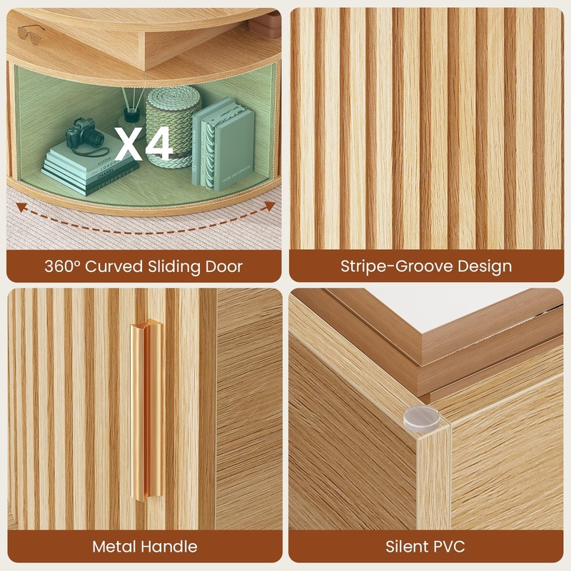 Itaar 31.5" Lift Top Coffee Table, 3-Tier Round Coffee Table with Storage, Fluted Coffee Tables for Living Room with Sliding Cabinet Door, LED Center Table, Natural Oak
