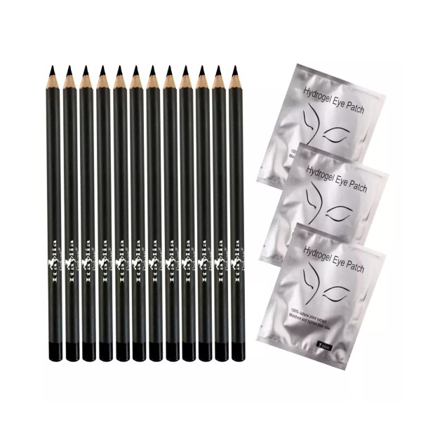 Italia Deluxe 12 pcs Eyeliner Pencil + 3 pair Hydrogel Eye Patch (Black)