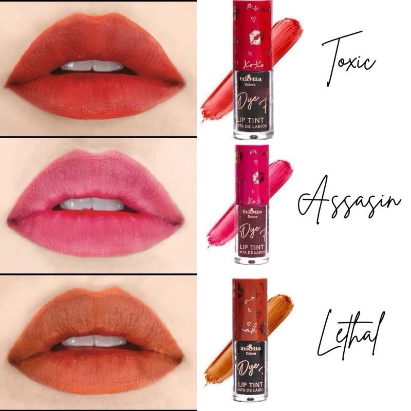 - Italia Deluxe To Dye For Waterproof Lip Tint ‚ú® Killer Color, Zero Regrets ‚ú® Say hello to To Dye For our long-lasting, waterproof lip tint. It stains lips with bold, high-impact color that won‚Äôt budge. Whether you‚Äôre out all day or kissing trouble, this tint stays put. Choose from 3 vibrant, Dangerously cute shades: Toxic, Assassin, and Lethal. This tint doesn‚Äôt play nice; it slays. üíß Water-based Formula = Lightweight Wear üíß The formula is water-based, ensuring lightweight wear. The smooch-proof, fade-resistant color keeps its intensity. It‚Äôs a high-pigment stain with a natural finish. Perfect for those who want a bold look that lasts. Try it today and experience the difference.