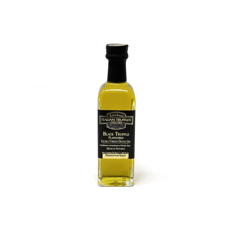 Extra virgin olive oil infused with the essence of black truffles. This special dressing is particularly suitable for pasta, risotto, eggs and vegetables. "We Guarantee that this condiment was made by the extended infusion of black truffles in excellent extra virgin olive oil. Our black truffle olive oil is ideal to flavor pasta, risotto, eggs or vegetables" Ingredients: extra virgin olive oil (99.5%), flavorings