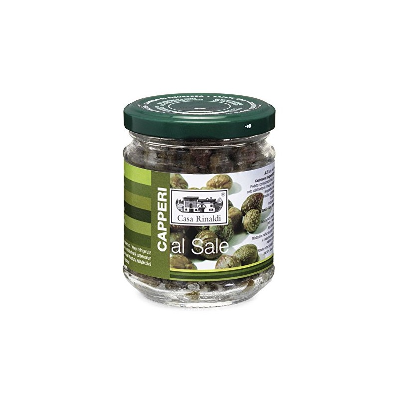 Casa Rinaldi Capers with salt in a glass without infusion liquid, 130 g. Italian capers with salt Capparts Spinosa is the wild growing shrub whose unopened flowers are offered as capers. If the flowers grow into a fruit, the caper apples are created. They are particularly attractive on cold buffets. Its delicate caper aroma also tastes great with sauces and cold cuts. Ideal for Vitello Tonnato, pure as tapas or also classic with Königsberger Klopsen. The spicy fruits of the caper tree inspire us to create all sorts of refined dishes. But also as a healthy snack or delicate garnish of salads and appetizers, they are a real hit! Caper apples are ideal for garnishing and in various appetizers. But also as an ingredient in salads, soups, sauces, main courses and even in desserts, the spicy fruits taste us. Even tasty caper apple jams and specialties with tuna, tomatoes or olives are available today. In combination with Mediterranean pasta dishes or squid, caper apples are pure pleasure. Alis S.r.l. Via Paletti, 1 41051 Castelnuovo Rangone, Modena Italy Zuaten: capers, salt, 30% nutritional information per 100 g, burning value 83 kJ / 20 kcal fat 0.7 g, of which saturated fatty acids 0.2 g carbonic hydrates 2 g. DAOF SUCKER. 0.2 g protein 3 g salt 19.5 g. Storage: cool, dry and protected from light. Store in the fridge after opening and consume within a few days.