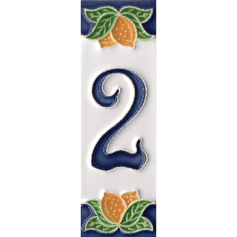 Italian Ceramic Numbers & Letters House Numbers Lemon Design Tile Size 10cm x 3.5cm (Number 2)