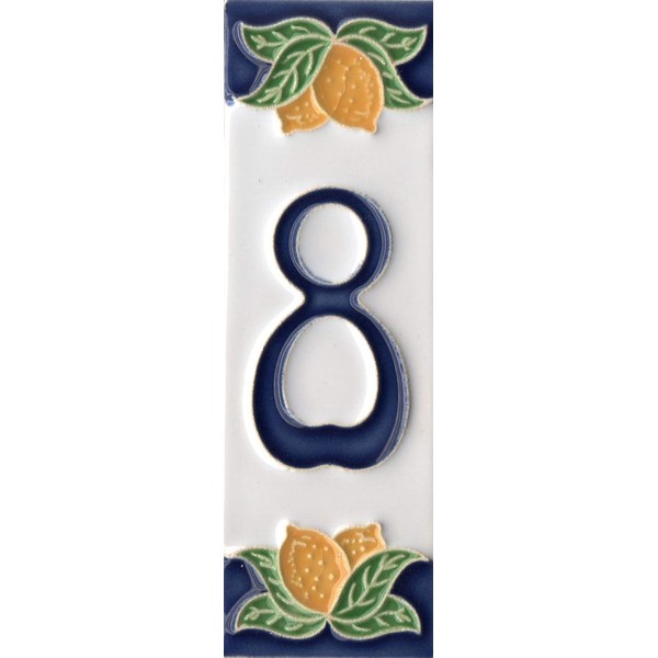 Italian Ceramic Numbers & Letters, Lemon Design - 10cm x 3.5cm Tiles, Frames (Number 8)