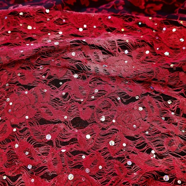 Italian Goth Floral Lightweight Apparel Fabric Sequin Designer Red By The Yard