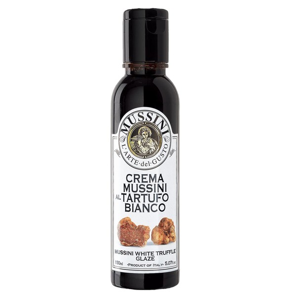 This Mussini truffle flavored thick glaze(also called balsamic reduction) of balsamic vinegar provides the chef with convenient flexibility in offering new and exciting preparations. Glazes can be used on raw or steamed vegetables, fruits, desserts, eggs, roasted & grilled meats, fowl, cheese and pizza to mention a few applications. Truffle glaze is ideal on meats, rice, soups, and cheeses. They may also be used individually or in combination as a finishing glaze prior to removing meat from the heat or to prepare unique vinaigrette. No added sugars or preserves. Prepared by Mussini in Modena, Italy, a land known worldwide for its rich history, culture and great cooking. The fertile Modena plains, where their Trebbiano and Lambrusco grapes are grown, are where the Mussini Family have been making balsamic since 1909. The Mussini Line represents the best in Modena balsamic production in terms of tradition, quality and price. All Mussini products are produced under the best of tightly controlled quality control standards.
