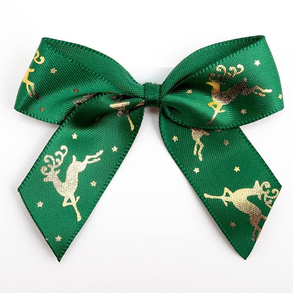 Italian Options Gold Reindeer Stag Christmas Bows 12 Piece Pack, 5cm Bow Width, Green Satin
