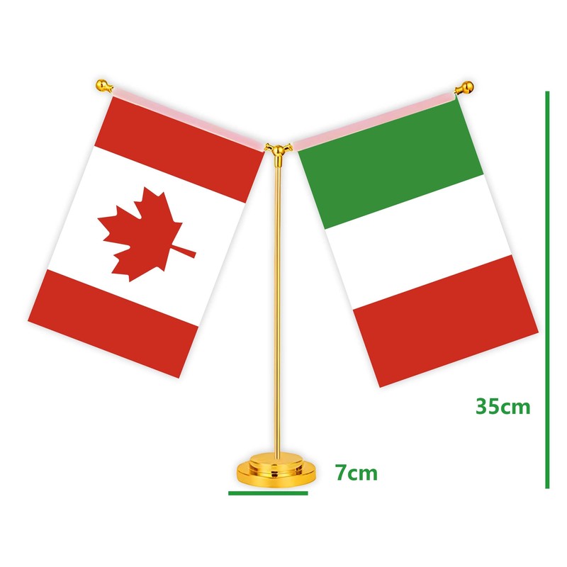 Italy Canada Combo Desk Small Flag Set,5×8 Inch Italian Canadian Mini Desktop table Banner,12 inch Metal Solid Pole Decor,Tiny Digital Printed Polyester Banner With Golden Base