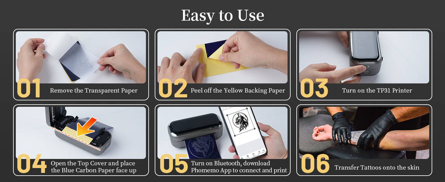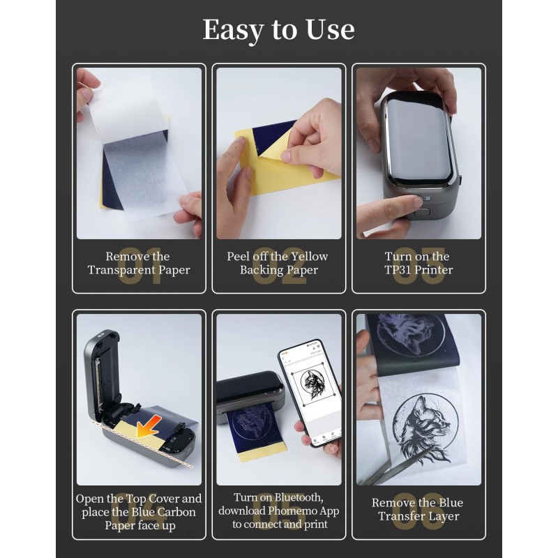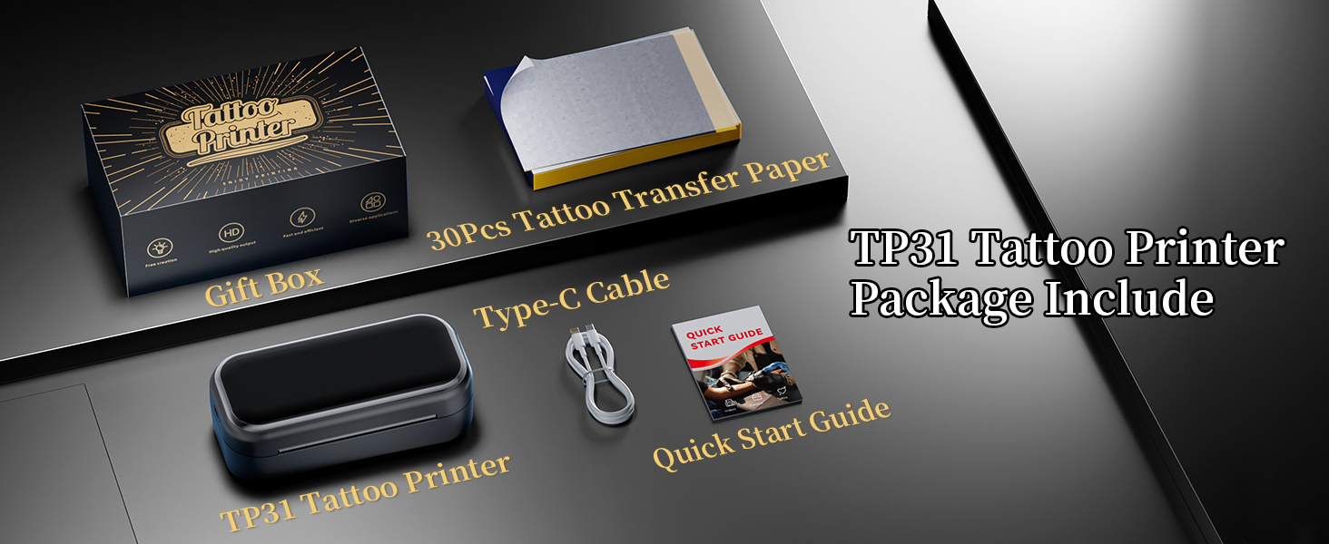 - Included Components: 30Pcs Tattoo Transfer Paper, 1x TP31 Tattoo Printer, Type-C