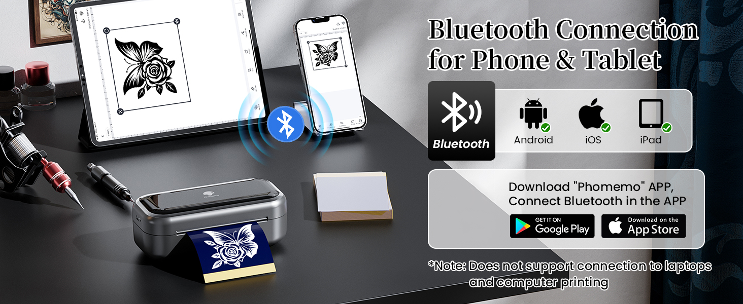 TP31 Bluetooth stencil printer for tattooing only Compatible with Smartphones & Tablets, Not Compatible with Laptops and Computers!