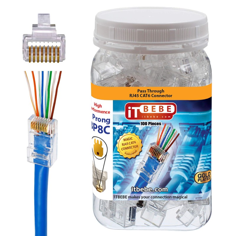 - El juego de 100 piezas de conectores de paso Cat6 te permite hacer cables Ethernet en longitudes personalizadas sin romper el banco. Nuestros conectores funcionan con prácticamente todos los modelos de herramienta crimpadora de paso, cable de 24 AWG. Los conectores ITBEBE funcionan para cables Cat6 sólidos y STRANDED.