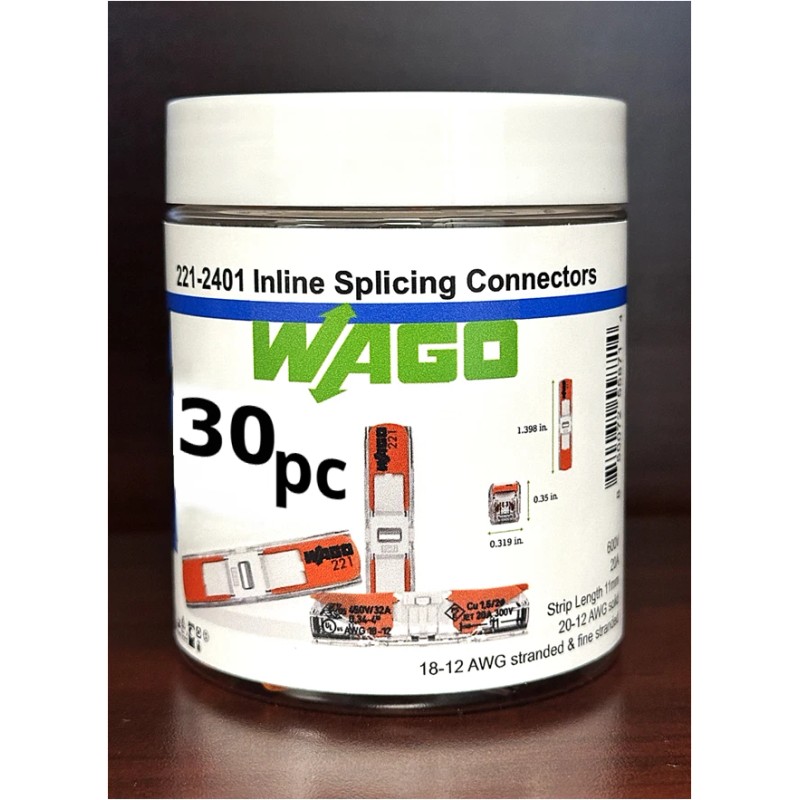 - UL Listed, Genuine WAGO 221-2401 Inline Splicing Connectors