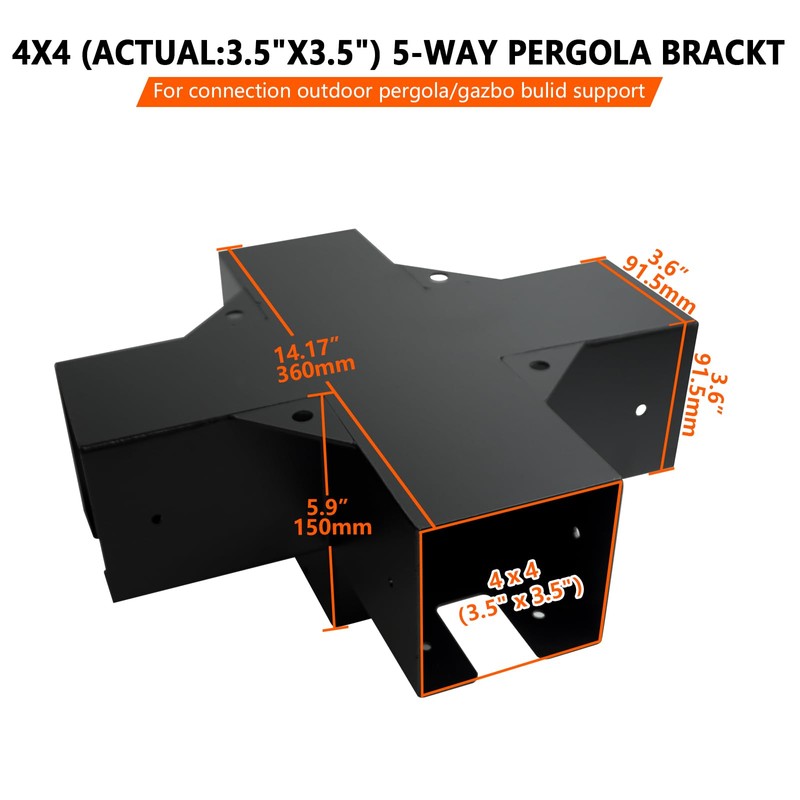 - 👉【Long-lasting durability】5-Pergola bracket kit is made of high quality heavy duty 14# steel,covered with a black galvanized layer,matte black electrostatic powder coating,the product is strong and stable,rust-proof and durable