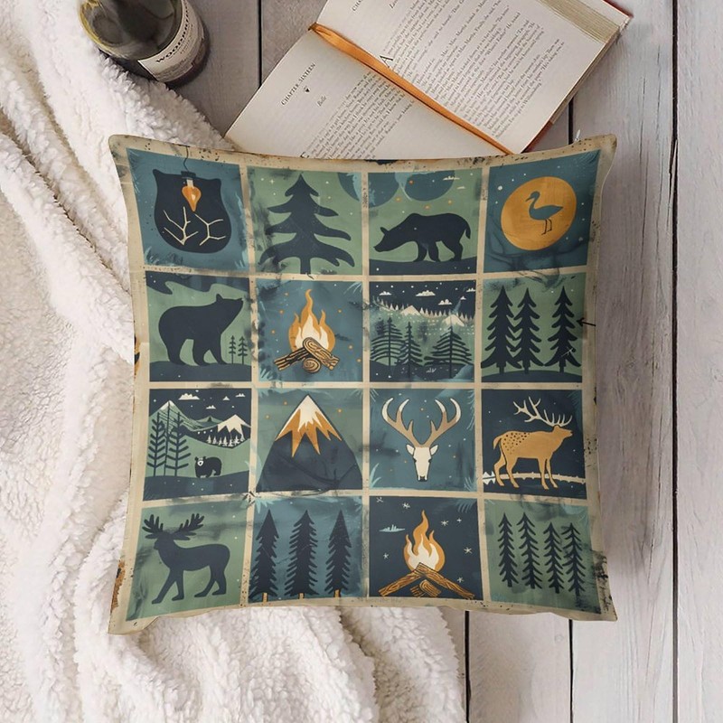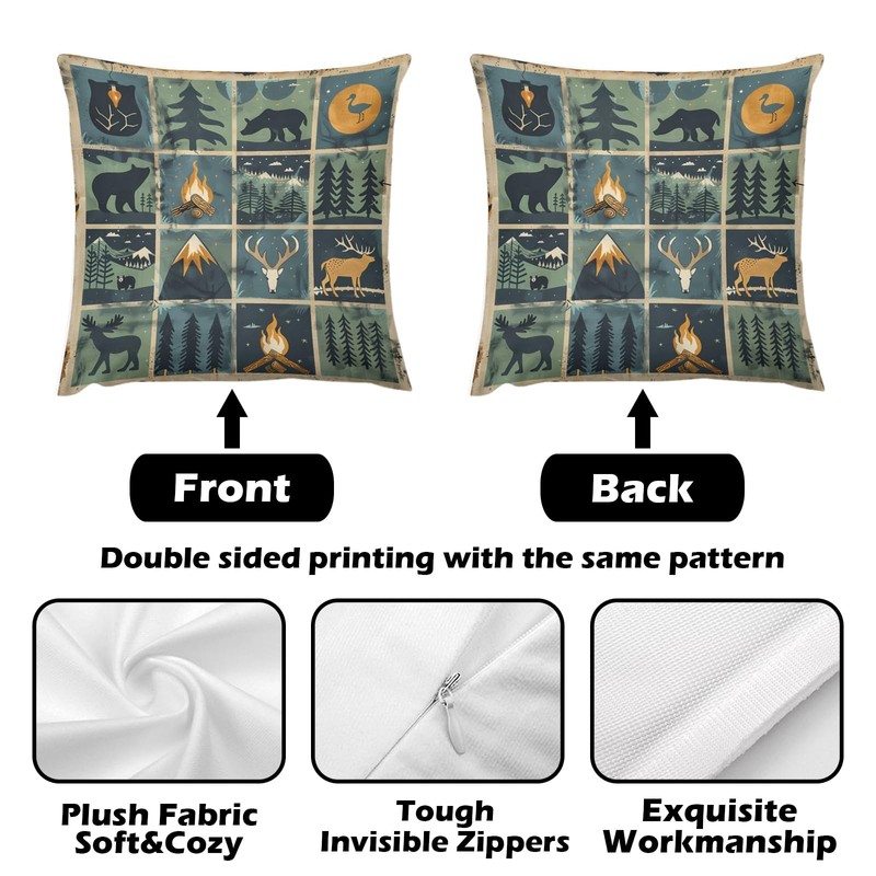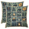 ITFRO Set of 2 Birthday Gift Nature Wildlife Bear Deer Forest Bonfire Pine Tree Short Plush Both Sides Square Retro Checkered Throw Pillow Cover Cushion Case Farmhouse Sofa Decor 18x18 Inches (Blue)