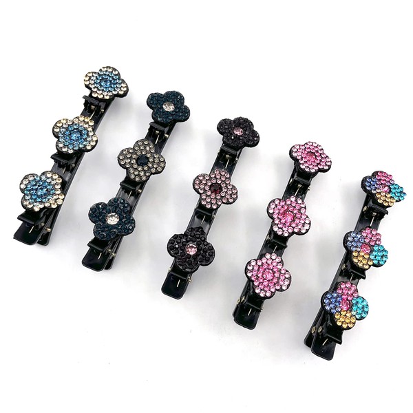 iTGOOS 5 Pcs Three Flower Side Hair Clips Sparkling Crystal Stone Braided Hair Clips Double Layer Hairpin Multi Clip Hair Barrettes Duckbill Clip with Rhinestone Braid Hair Accessories