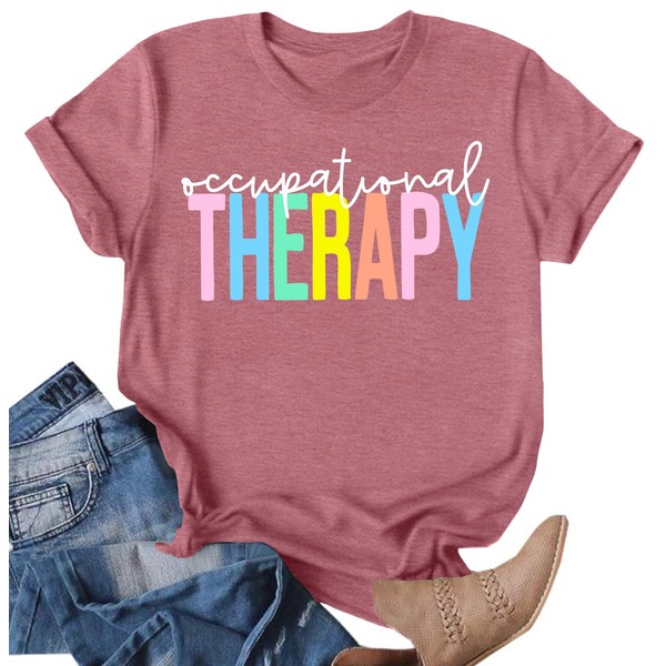 Ithalt Womens Occupational Therapy Shirts Therapist Shirt OT T-Shirt Mental Health Gifts Tops(Pink, Medium)