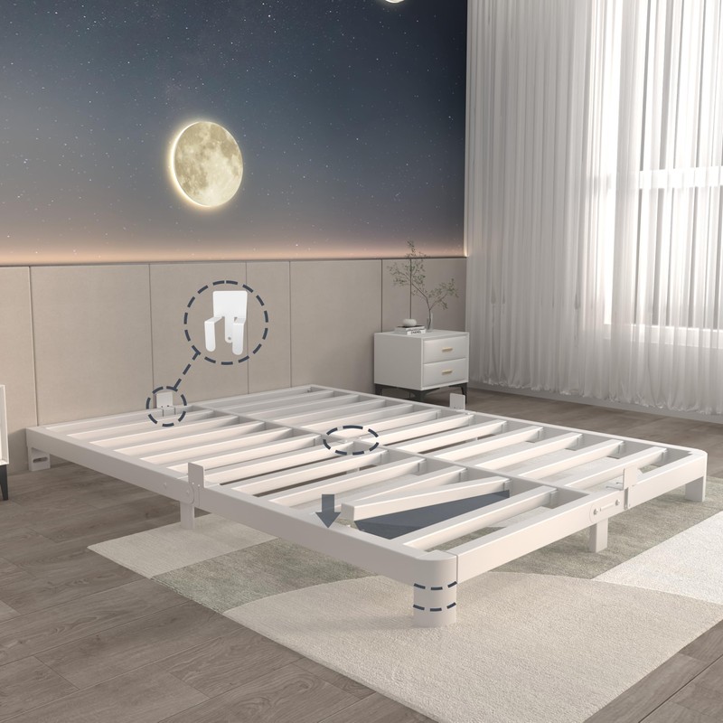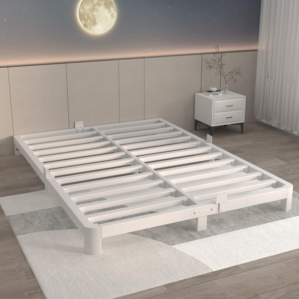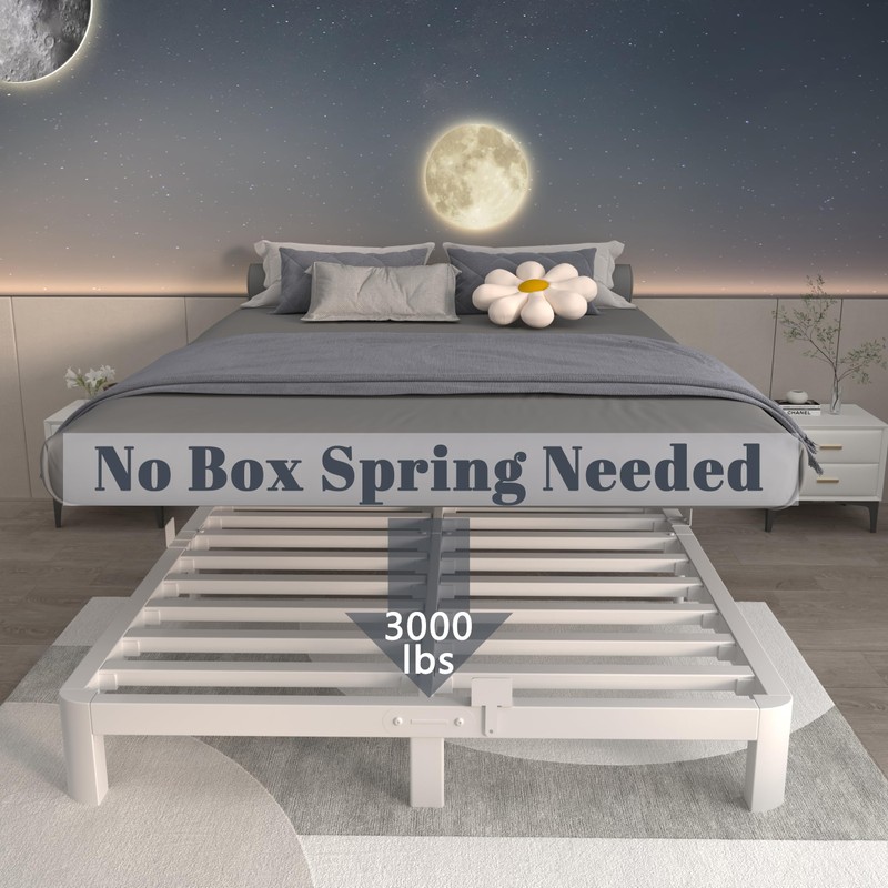 - 【4 inch Full Platform Bed Frame】White bed frame full size is made of high-strength steel, and is strong enough to hold up to 3000 pounds, ensuring you a safe and stable sleep. Our metal platform bed frame has a unique white matte texture, which is more fashionable and durable, and the paint is not easy to age and peel off.