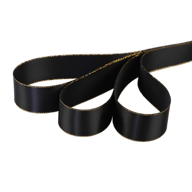 ITIsparkle 25mm Width Double Faced Satin Ribbon 22 Meters with Gold Edges, 25mm X 25M - Black