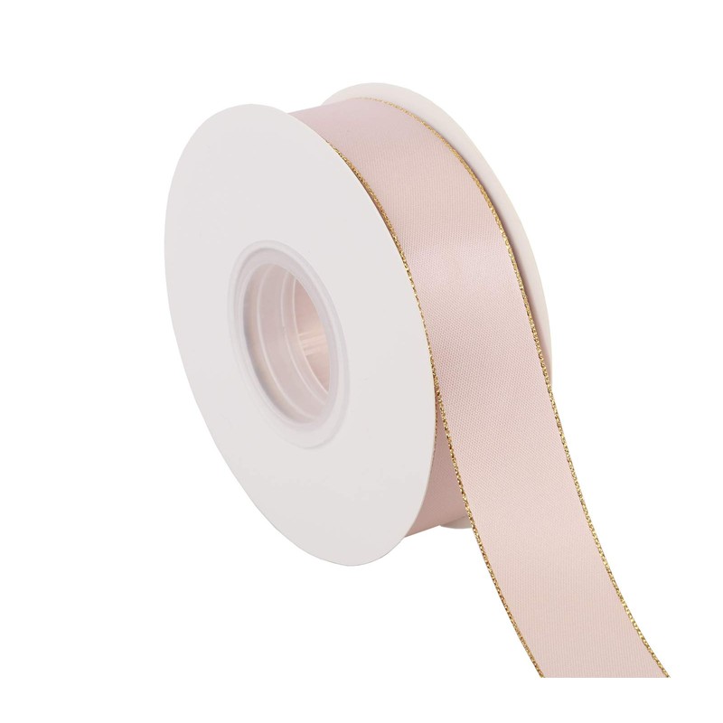 - 25mm wide with gold edges comes in 22 Meters by roll, 100% Polyester fabric ribbon.