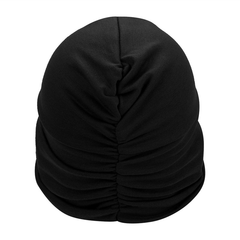 ITODA Turban Women's Fashion Cap African Headscarf Head Wrap Hat Pre-Tied Knot Sleeping Hat Cotton Turban Hat Elasitic Sleep Hat Pleated Headwear for Hair Loss Sleeping Leisure, black